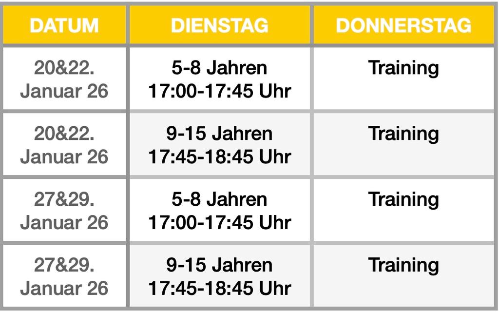 Für den Schnupperkurs bieten wir zwei Altersgruppen an: